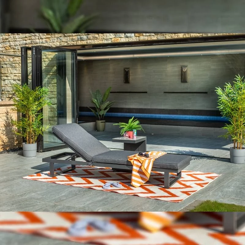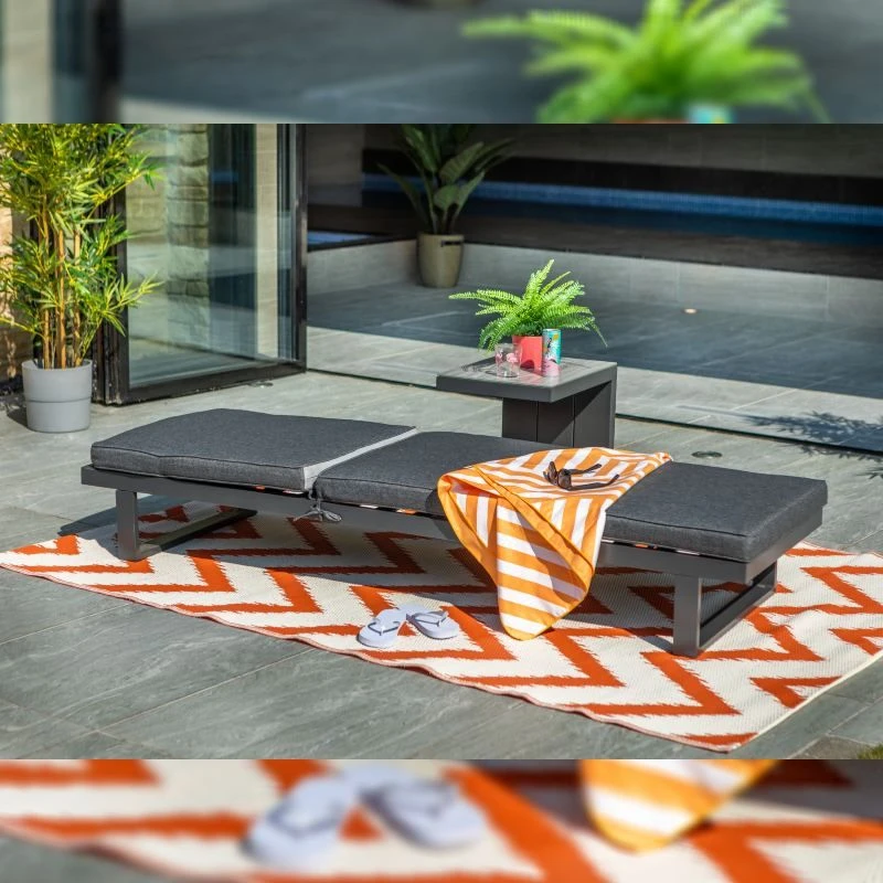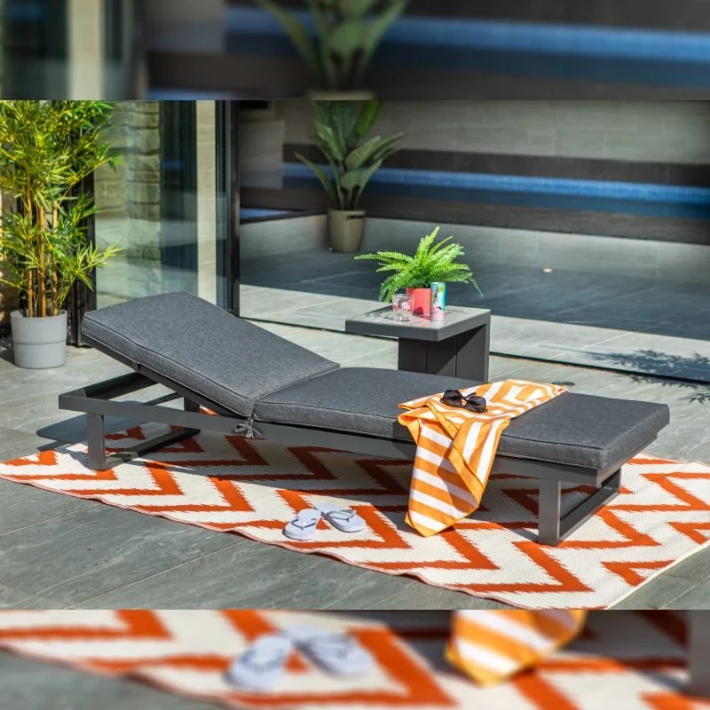 This Hartman lounger from the Cosmopolitan range is a beautiful, simplistic outdoor lounger that brings style to your outside space. The exquisite Cosmopolitan sun lounger can lay flat or be raised in 4 different positions for the ultimate level of comfort. This lounger features the Hartman luxurious slate coloured cushions that are complete with permeable Weatherready® technology that offers reassurance throughout the summer showers. The slate coloured cushions are paired with the stunning Matt Xerix coloured strong & durable aluminium frames that bring a modern twist into your outdoor space.