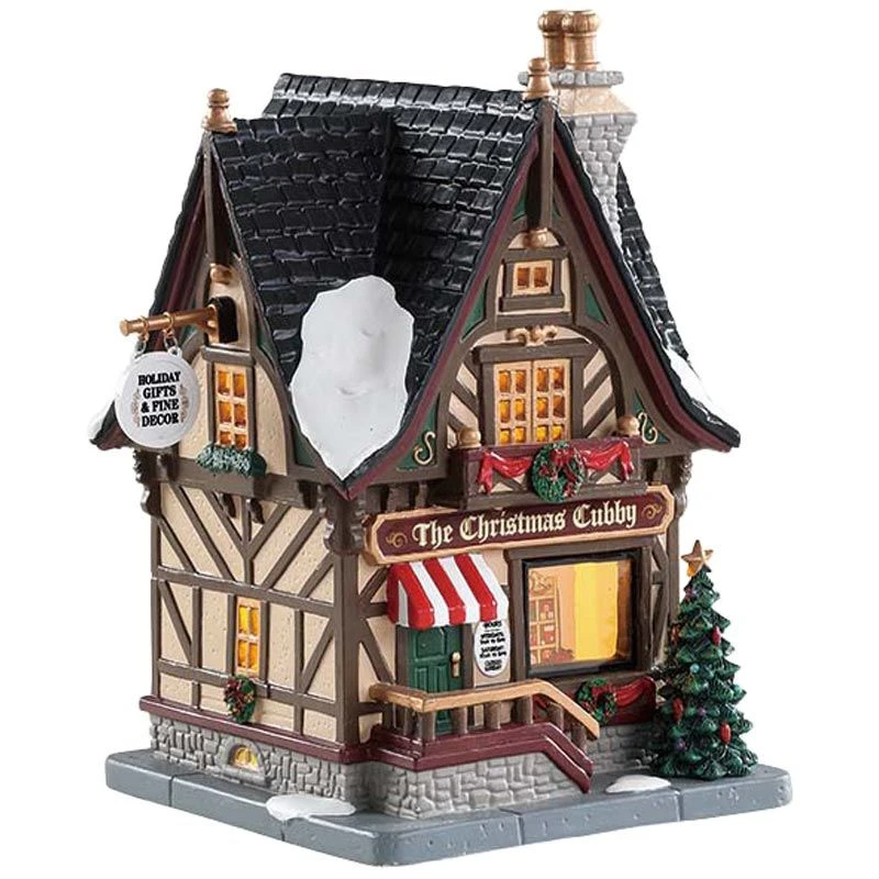 - Lemax The Christmas Cubby – a lighted building that belongs to the Lemax Caddington Village Collection.